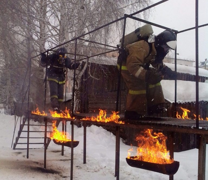 В полном боевом обмундировании, в дыхательных аппаратах с баллоном за спиной, пожарные-спасатели преодолевали различные препятствия в условиях, максимально приближенных к реальным: задымленный лабиринт, подвесной мостик над емкостью с открытым пламенем, высотная эстакада, горящий забор и другие препятствия.
