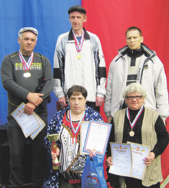 По метанию дартса наша женская часть команды — Раиса Пятовская, то есть я, и Флюза Пермина заняли 2 и 3 место соответственно. Среди мужчин Валерий Махетов занял 2 место.