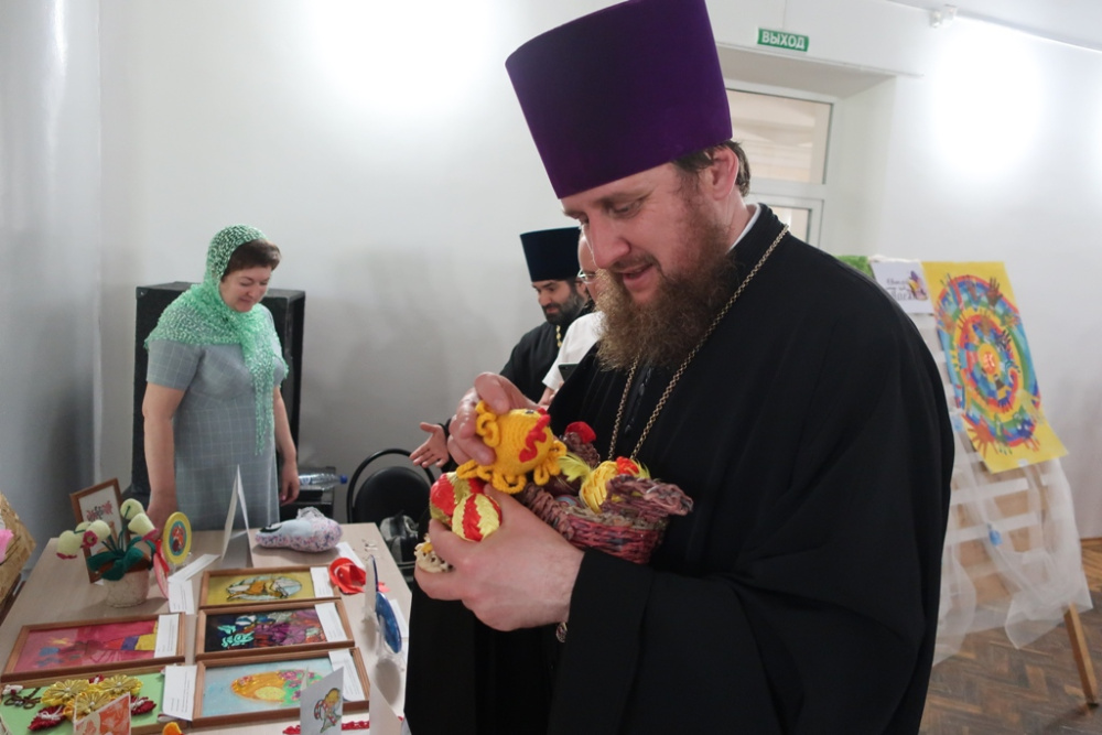 Перед концертом в фойе Паркетного зала была представлена великолепная выставка авторских фотографий, рисунков, поделок, редких православных изданий. С содержанием вернисажа с интересом ознакомились гости, прихожане, зрители. Высоко оценил масштаб выставки и мастерство жителей Горного края секретарь Златоустовской Епархии, протоиерей о. Дионисий Абрамов. В музей управления Епархии он выбрал много искусных экземпляров расписных пасхальных яиц.