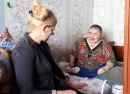 Дверь открыла Тамара Фёдоровна и пригласила пройти к своей маме. Нина Фёдоровна гостям очень обрадовалась и встретила нас открытой доброй улыбкой: «Проходите, проходите ближе, не стесняйтесь. Жалко, что не смогла вам открыть дверь сама». На несколько секунд у меня подкатил ком, и я еле смогла удержать слёзы. Но видя, как Нина Фёдоровна, сидя на постели, приготовиласьк вручению юбилейной медали, я зачитала ей выдержку из Указа Президента России и преподнесла юбилейную медаль. Она хорошенько её рассмотрела, и с искренней благодарностью приняла цветы и небольшой подарок: «Спасибо, что не забываете! Спасибо, что пришли!»