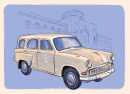 Открытку украшает почтовый ретроавтомобиль — Москвич-423Н. Дизайнер срисовала его с фотографии, хранящейся в Музее почтовой связи Челябинской области. Москвич-423Н был одним из транспортных средств Автобазы связи. На нём в 1970-е годы в Челябинске развозила письма, посылки и газеты по почтовым отделениям первая женщина-водитель Автобазы связи Валентина Яковлевна Андреева.
