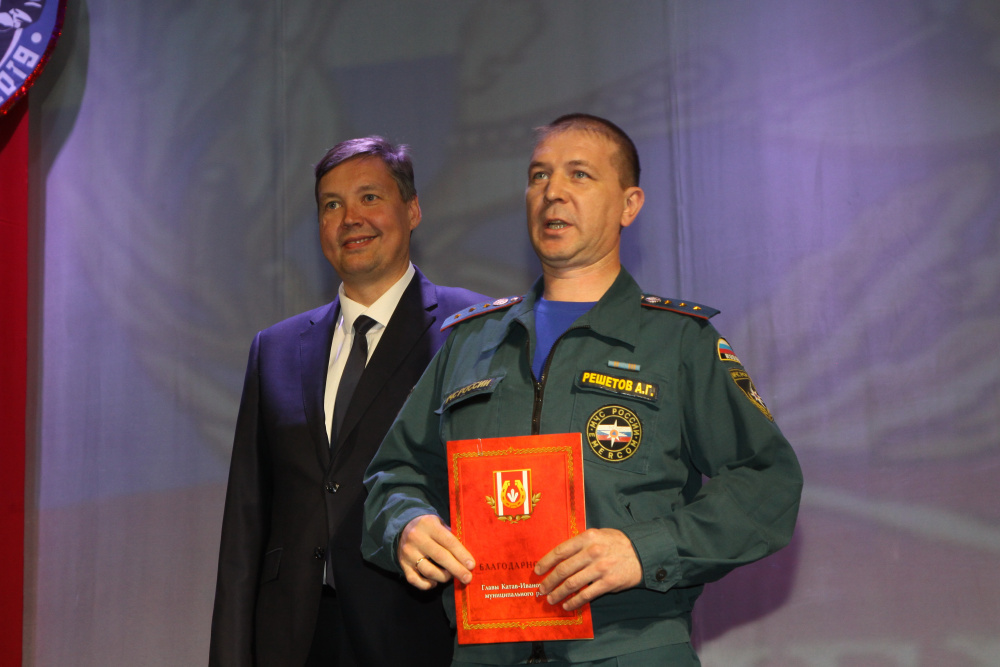 Сегодня противопожарная служба Челябинской области - это действенная, мощная структура, которая реально помогает людям, обладает оперативными квалифицированными кадрами. Катав-ивановские огнеборцы – профессионалы своего дела. Они всегда приходят на помощь городу при крупных коммунальных авариях, стихийных природных явлениях. Нашим жителям и власти впервые пришлось столкнуться с землетрясением, оползнем, афтершоками, - не было у нас подобного опыта работы. С помощью МЧС и учёных по этому направлению ведутся исследования в ежедневном режиме до сих пор. И 14-я ПЧС – наш надёжный партнёр. Спасибо сильным мужчинам, носящим форму и погоны! И выполнить наградную миссию нам было очень приятно!