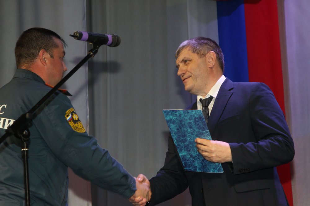 Николай Рудаков вручил Почётные грамоты Собрания депутатов Катав-Ивановского муниципального района Артемию Тараканову, помощнику начальника караула 14 ПСЧ ФГКУ «10 ОФПС по Челябинской области», Данису Исмагилову, старшему инструктору по вождению пожарной машины, Благодарность - Дмитрию Серебрякову, старшему инструктору по вождению пожарной машины, Андрею Козлову, командиру отделения 14 ПСЧ ФГКУ «10 ОФПС по Челябинской области».