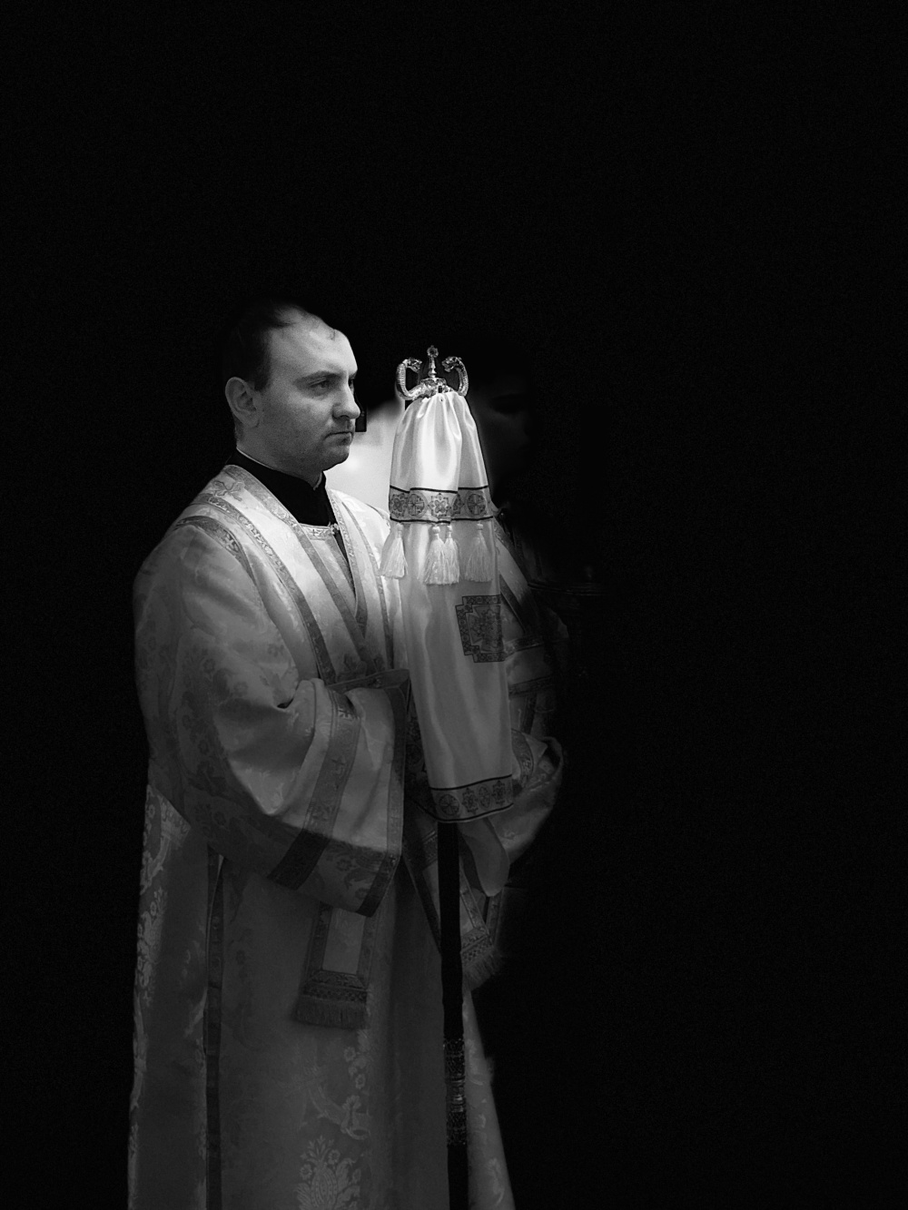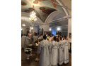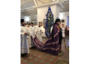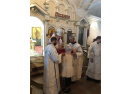 Божественная литургия, как всегда, проходила торжественно и красиво. Каждый раз обращаешь внимание на то, в каких облачениях выходят к пастве священники. Ведь цветовая гамма отражает церковно-литургическую символику, а каждый цвет - духовное значение события, в честь которого совершается богослужение. В двунадесятый праздник Собора Предтечи служители православия были в белых одеждах, символизирующих свет, воссиявший от гроба Христа при его воскресении. Особенно искусно изготовлено шёлковое облачение владыки Викентия, на котором величественно смотрятся крест и панагия.