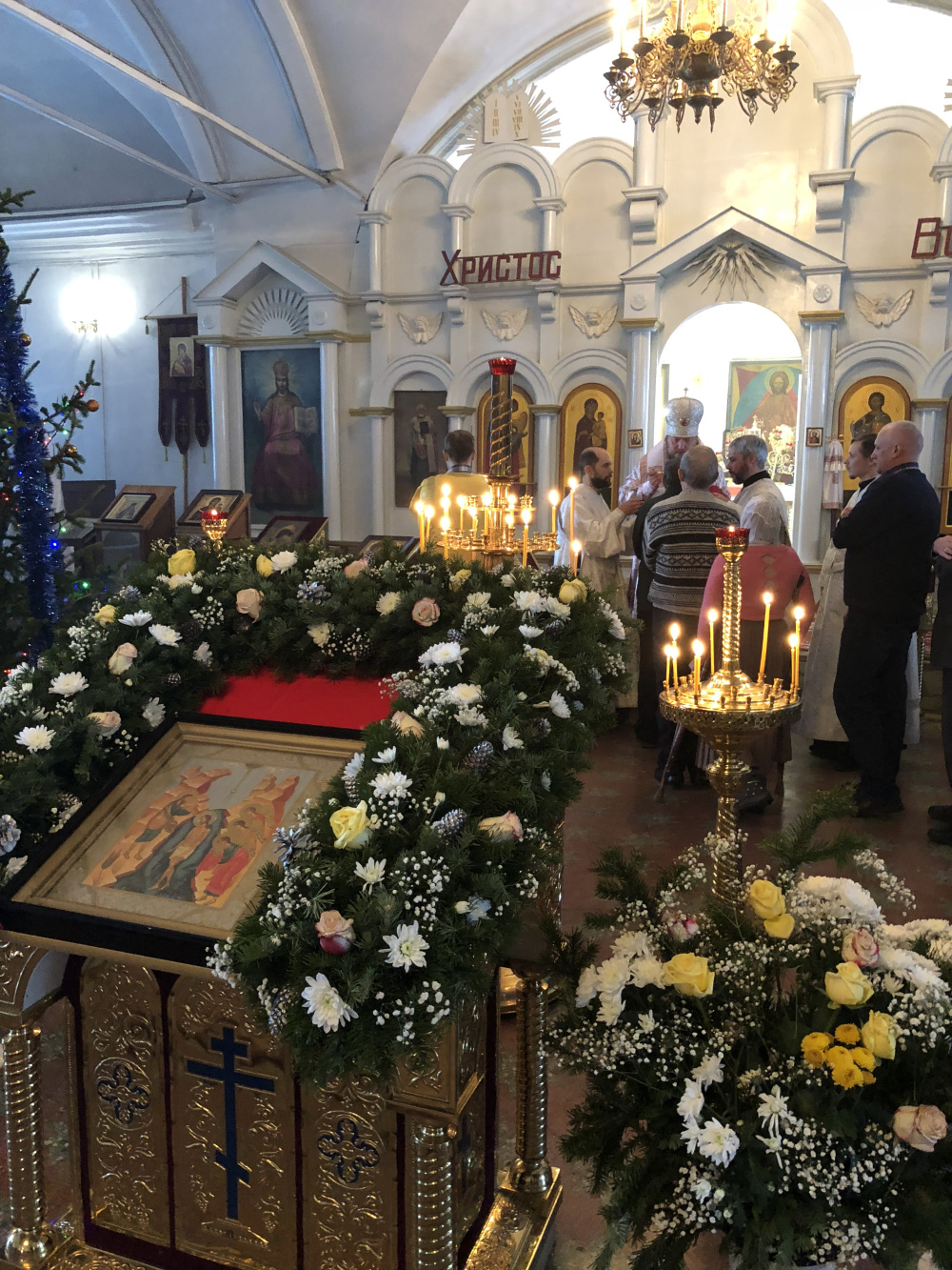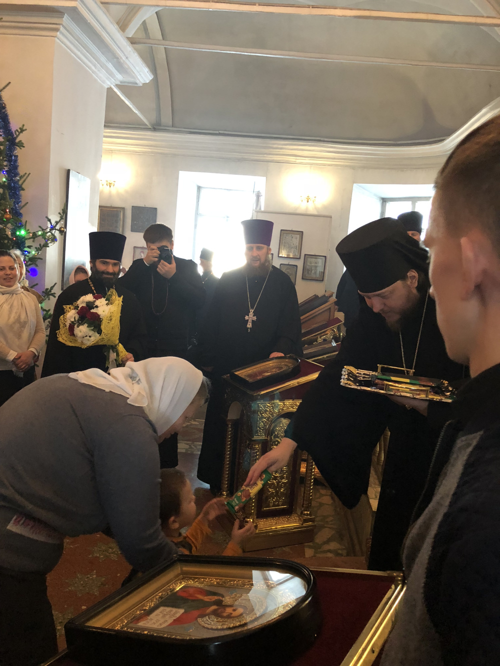 Крещение в этом году выдалось морозным, следующий за ним день - попразднство Богоявления (длится на протяжении четырёх дней. - прим.авт.) – также со звенящим морозцем и ярким январским солнцем. Тем не менее, в храме Иоанна предтечи тепло, красиво и уютно. Икона в центре зала украшена белоснежными хризантемами, горят огоньки на рождественских елях – всё убранство сочетается с тонким изяществом собора, где каждый пришедший чувствует себя нужным и знает, что на территории родного района есть место, где выслушают и помогут добрым словом, молитвой…
