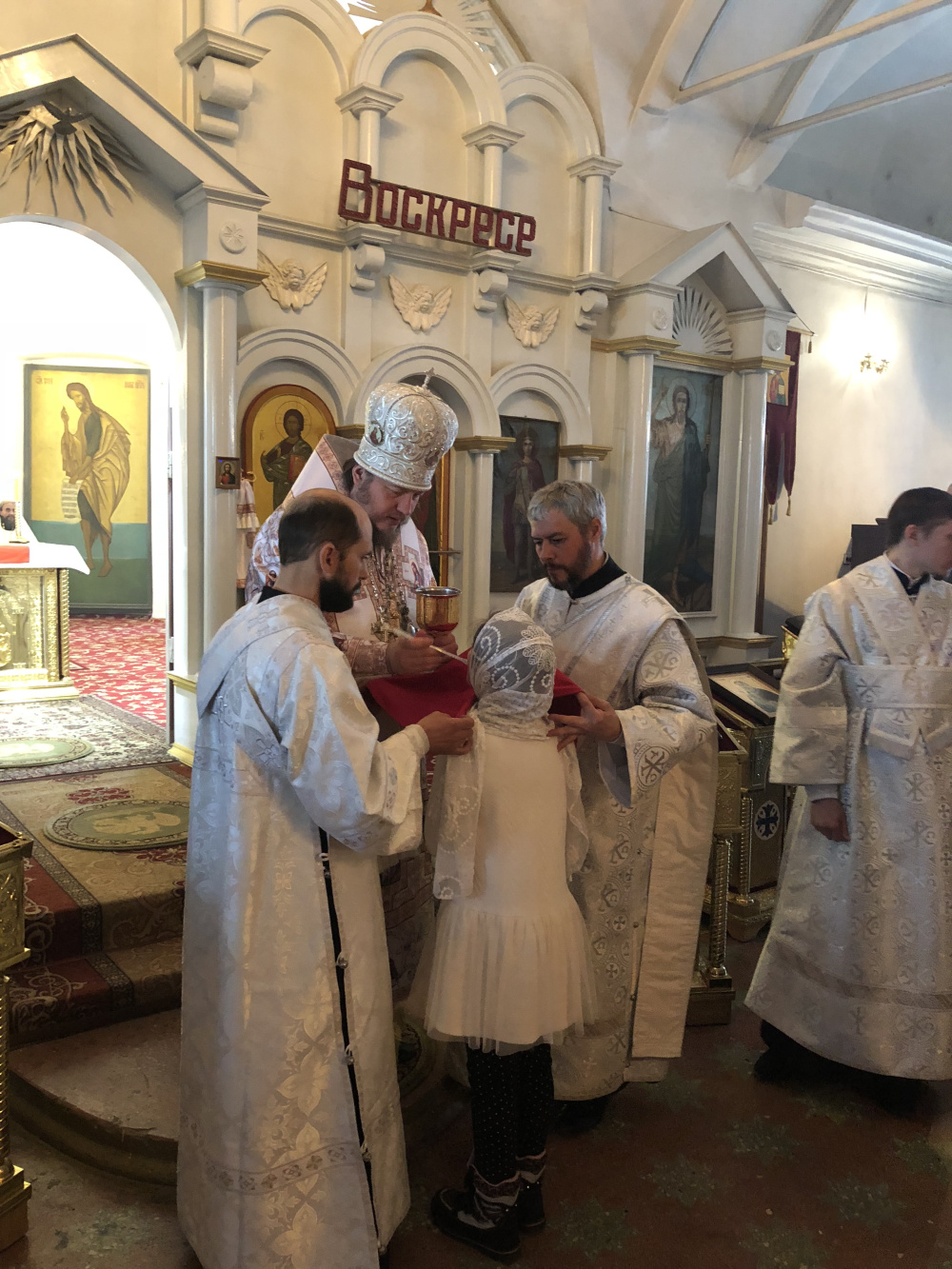 С проповедью к прихожанам обратился Дионисий Абрамов. Затем было причастие.