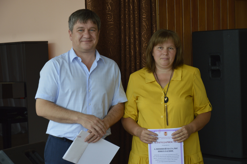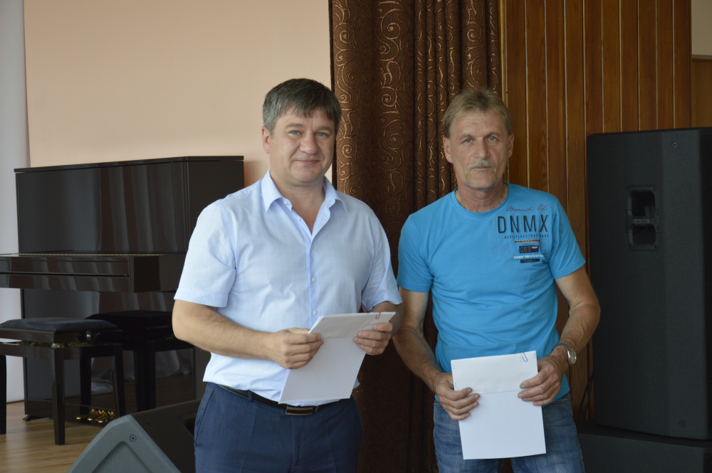 В этот жаркий августовский день в актовом зале предприятия собралась его малая часть. Несмотря на это, обстановка была абсолютно легкой и приятной. Каждый работник завода излучал спокойствие и доброту. После вступительного слова директора производства, Николай Рудаков наградил почетными грамотами главы района за многолетний и добросовестный труд, высокие профессиональные достижения и в связи с Юбилеем предприятия— Полухину Ксению, мастера малярно-гальванического участка производства №2, Юрия Сырцева, слесаря механосборочных работ производства №3. Благодарственное письмо вручил Ивану Хатипову, оператору координато-пробивного и гибочного оборудования производства №2.