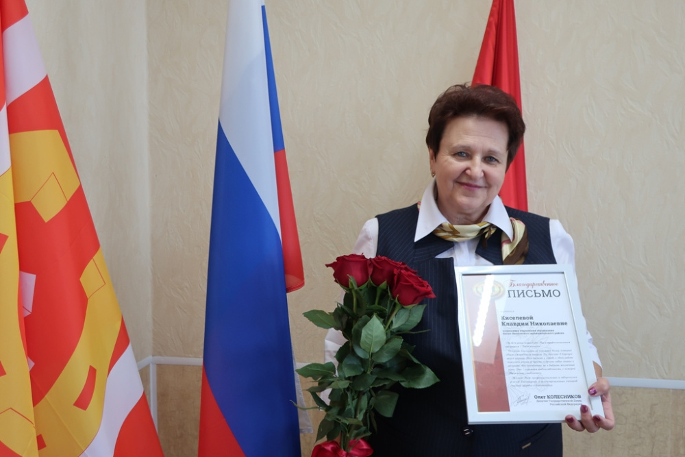 На аппаратном совещании, 8 октября, Евгений Юрьевич Киршин, глава Катав-Ивановского муниципального района, отметил за достойный труд заслуженных педагогов: Клавдию Николаевну Киселёву, начальника управления образования, - Благодарственным письмом и премией депутата Государственной Думы Российской Федерации Олега Алексеевича Колесникова, Благодарственным письмом Губернатора Челябинской области Бориса Александровича Дубровского, Почётной грамотой главы муниципалитета – ветеранов педагогического труда – Маргариту Фёдоровну Беглецову, Веру Ивановну Соловьёву, Александра Михайловича Зюзина.