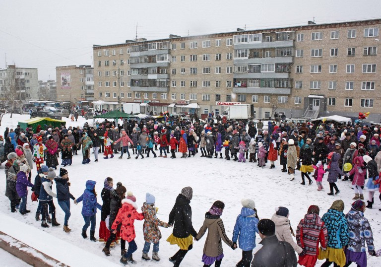 Ближе к полудню стал собираться народ и на Центральной площади Катав-Ивановска. Издалека был слышен звон бубенцов на лошадиных повозках, в которых с такой радостью катается ребятня. Запахи шашлыков и блинов витали над толпой горожан, заставляя переходить от одной палатки к другой. А в центре площади в это время было веселье. Все известные музыканты Катав-Ивановского района собрались на одной сцене. Они пели так задорно, что многие не могли устоять на месте и подтанцовывали.