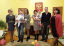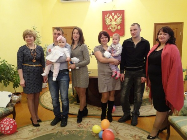Галина Ивойлова, начальник отдела ЗАГС, поздравила родителей и их родных, присутствующих на торжестве, прочитала для них содержательные стихи. Руководитель местного исполкома партии «Единая Россия» Галина Федосеева отметила, что детям исполнился год в юбилейный День Конституции России, пожелала супругам, чтобы их дети росли здоровыми, талантливыми, радовали их и окружающих, охотно изучали Законы родной страны и гордились тем, что их Родина – Великое государство российское. Галина Филипповна вручила детям красочные объёмные открытки, Конституцию РФ, фирменных «единороссовских» мишек, а родителям – рулетки, чтобы мерили, как растут их детки. Арине и Вере особенно понравились игрушечные музыкальные медведи.