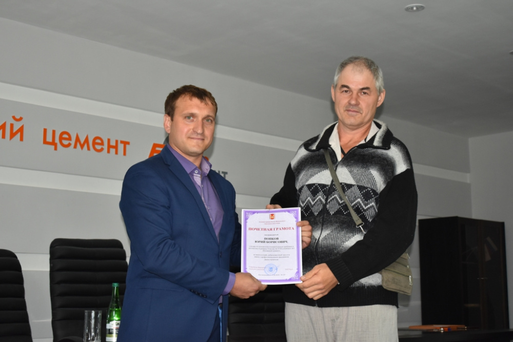 Тепло поздравил заводчан и председатель районного Собрания депутатов Николай Рудаков, от депутатского корпуса пожелал всем здоровья, благополучия, уверенности в завтрашнем дне, счастья и успехов. Почётной грамотой представительного органа муниципального района местные парламентарии отметили: Олега Гудкова, машиниста угольных и цементных мельниц 5 разряда цеха помола цемента, Алексея Астафейчука, насыпщика цемента 4 разряда цеха упаковки цемента и отгрузки, Флюру Шитову, мастера контрольного лаборатории технического контроля, Алексея Коломейца, мастера участка по ремонту механического оборудования, Сергея Климова, электромонтёра по ремонту и обслуживанию электрооборудования 6 разряда участка по ремонту электрического и энергетического оборудования, Ирину Королёву, контролёра службы внутреннего контроля.