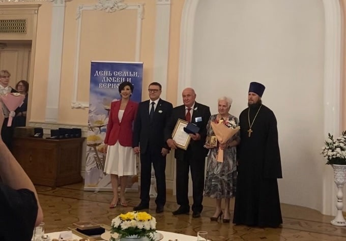 Губернатор Челябинской области Алексей Леонидович Текслер и его супруга Ирина Николаевна вручили семейным парам медали «За любовь и верность», а руководитель отдела социального служения Челябинской епархии иерей Павел вручил икону благоверных Петра и Февронии.