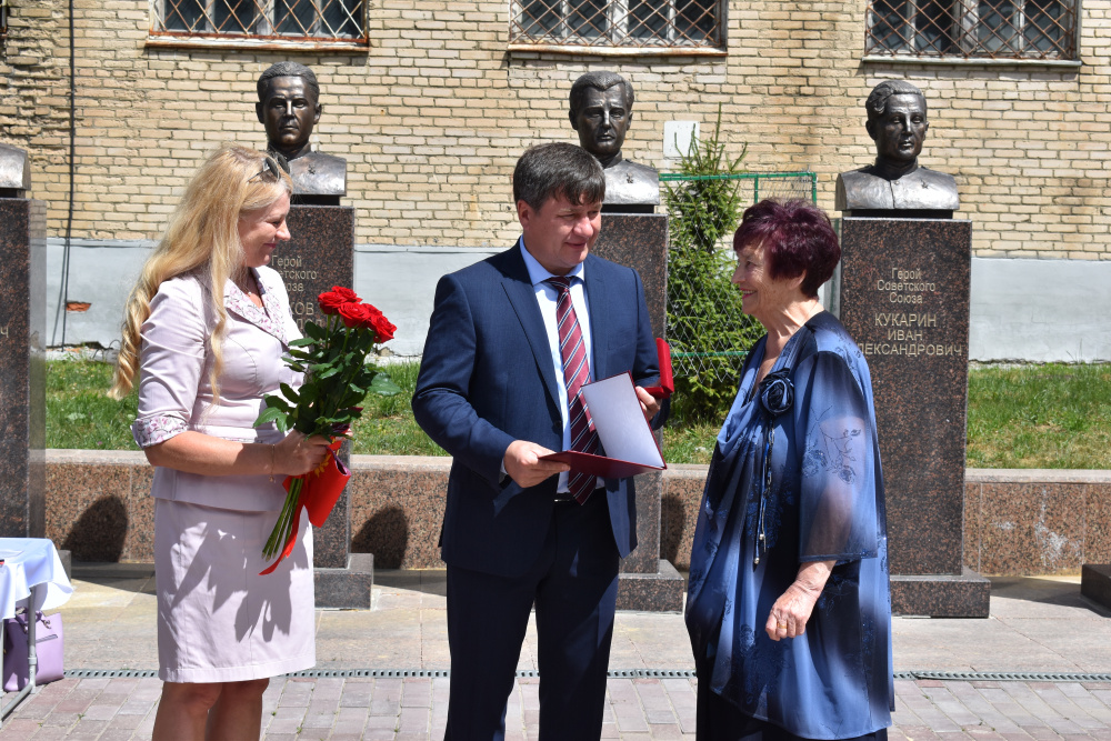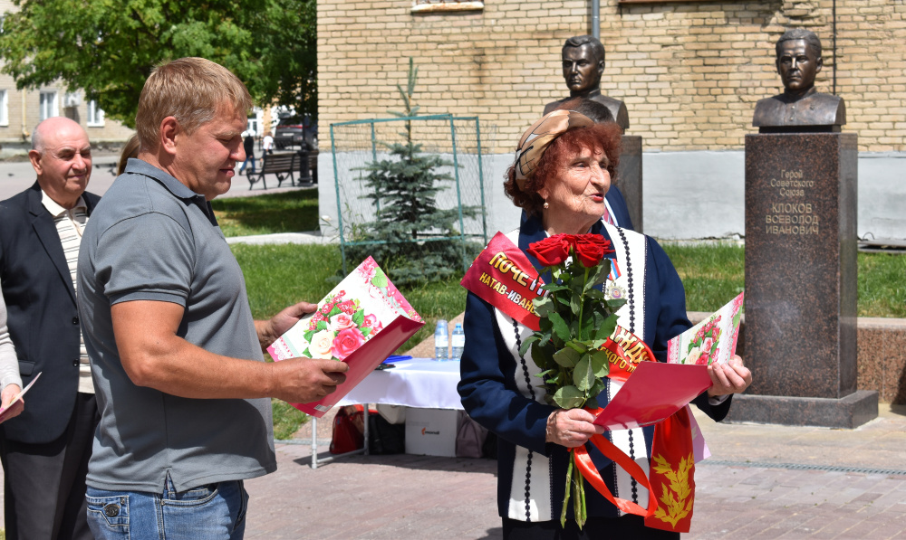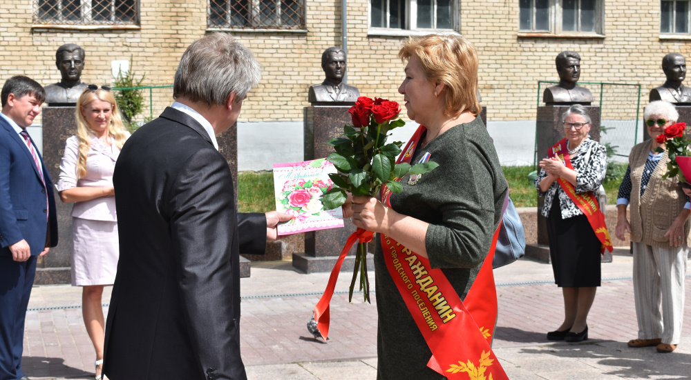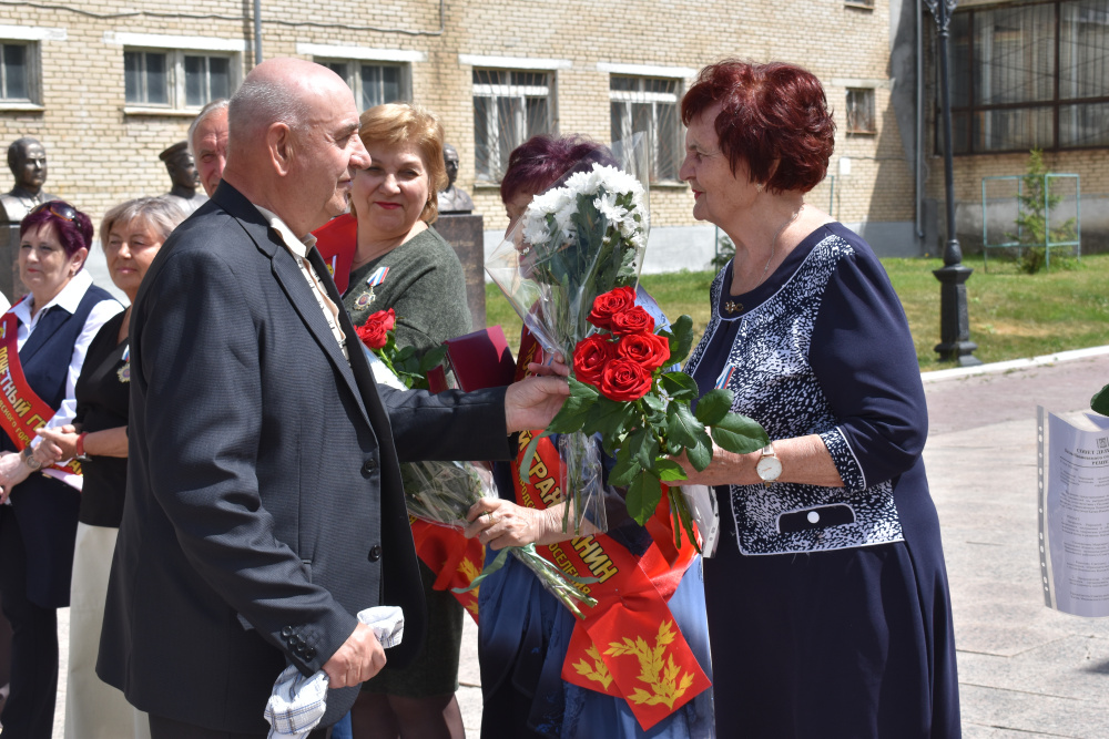 К Почётным гражданам обратились депутаты Елена Константиновна Киселёва, Валерий Александрович Ерёмин, Алексей Геннадьевич Воробьёв, Людмила Геннадьевна Горлова. Они вручили памятные юбилейные адреса виновникам торжества и красивые букеты из алых роз.