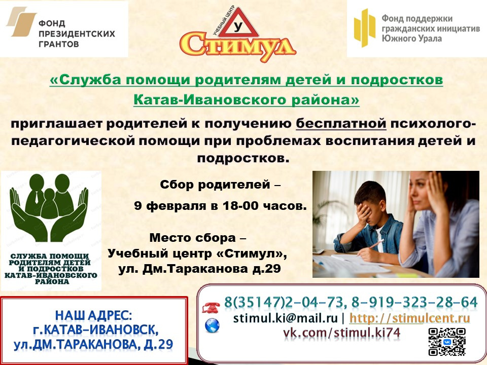 На средства гранта создается первая в нашем районе централизованная Служба помощи родителям детей и подростков Катав-Ивановского района. Проект разработан для оказания родителям и законным представителям морально – психологической, консультационной и образовательной помощи и рассчитан на 11 месяцев, с 1 февраля по 31 декабря 2024года.