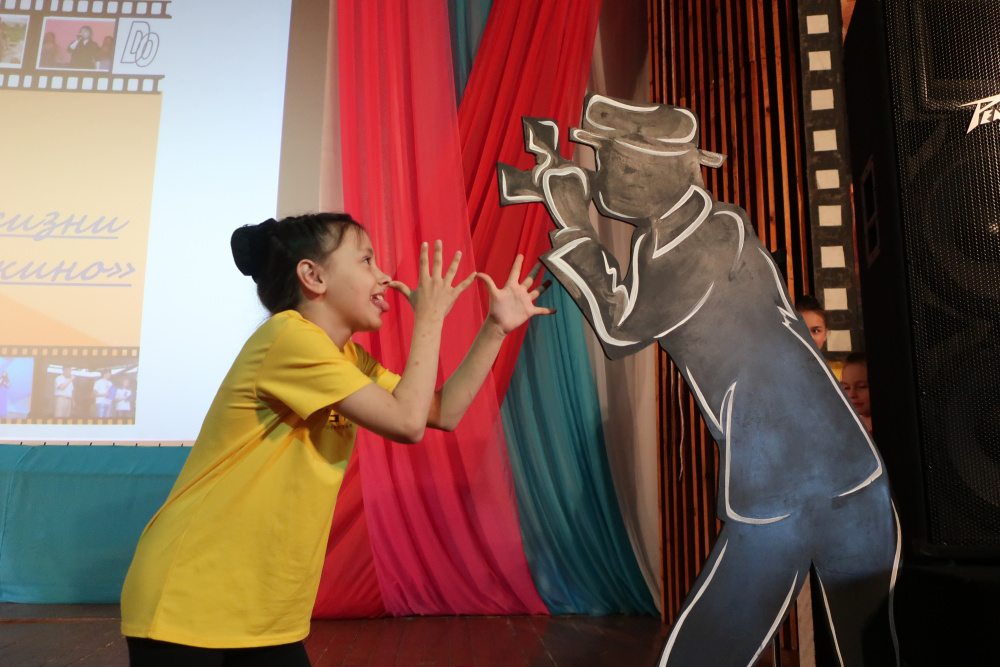 Сам же юбилейный вечер был организован 19 апреля. Гостей было очень много! Они поднимались в зрительный зал по «кинопрокатной» лестнице, затем делали снимки в фотозонах с героями полюбившихся кинофильмов, получали газету от красавца-почмейстера и проходили в уютную киностудию, где и шёл праздничный диалог.