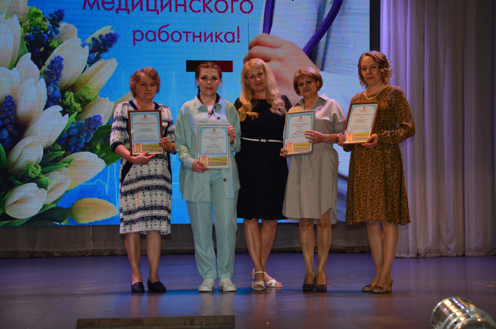 По традиции в зале дворца культуры в преддверии профессионального праздника медицинские работники принимали поздравления, много добрых слов признательности, уважение и благодарности звучало для всех работников, а лучшие из них были отмечены почетными грамотами и благодарностями всех уровней.