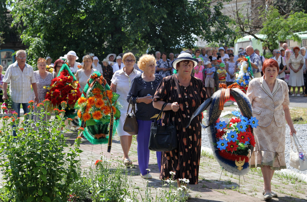 Обычно, это мероприятие проходит в сквере Победы, но в этом году, из-за его реконструкции, митинг перенесли во двор Дворца культуры, где расположен памятник цементникам, погибшим в годы Великой Отечественной.