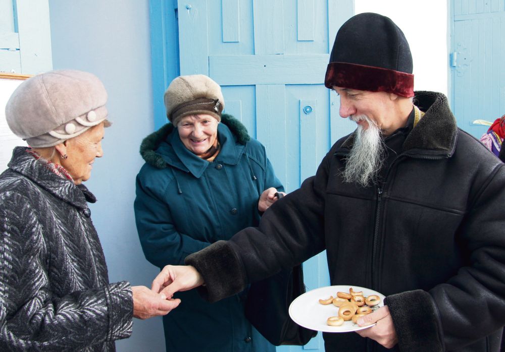 Ежегодно ее проводит коллектив детской воскресной школы. На сей раз холодный ветер заставил участников праздника потесниться, и все веселое действо проходило под крышей — на паперти церкви.