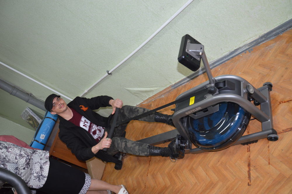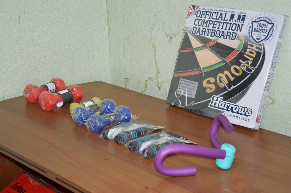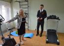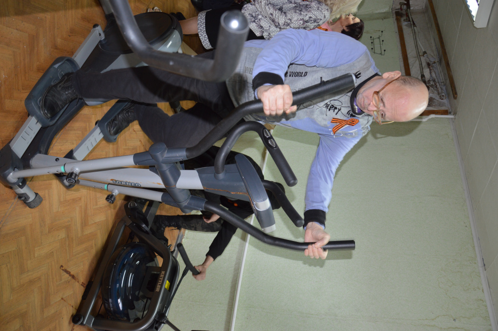 Людмила Геннадьевна рассказала об имеющихся в зале тренажёрах и спортивном оборудовании. Своими силами члены общественной организации установили беговую дорожку, велотренажер, шведские стенки, брусья и турник для подтягивания, тренажер «гребля». Так же в рамках проекта общество инвалидов получило дартс, ролик для пресса, экспандеры, гантели, скакалки, фитбол, гимнастические коврики и напольные весы.
