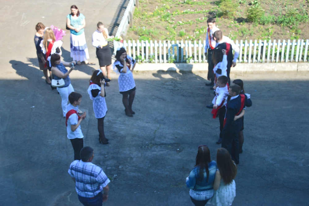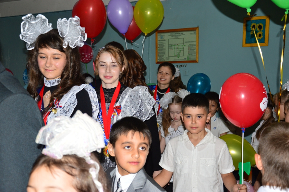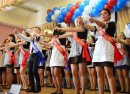 Затем они прошли в актовый зал, где 35 выпускников приготовили школе прощальный концерт.