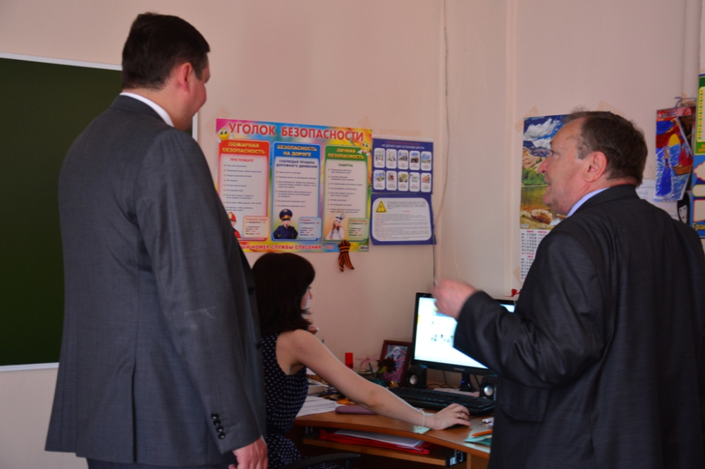 В начале директор школы Александр Базанов провел для главы района небольшую экскурсию, показал самые интересные кабинеты, а также кабинеты и коридоры, где недавно был проведен ремонт.