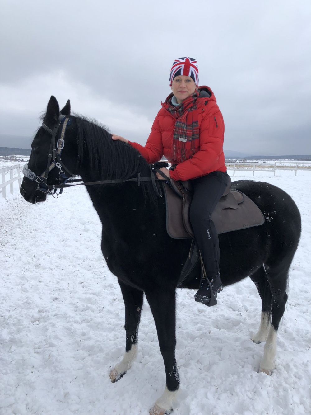 С тремя приветливыми «девочками» мы познакомились, их зовут Победа, Багира и Балистик. Победа тут вожак, двое остальных её слушаются беспрекословно, ну, и хозяина, конечно. Скакуны очень приветливые, машут головами (приветствуют), кланяются и любят, когда их угощаешь сахарком. Любят играть в снегу! Лошадки – такие изящные, ухоженные. Победа меня прокатила, мне было комфортно на кожаной тёплой сбруе. А потом мы фотографировались, - представляете, эти «звёзды» умеют даже позировать! Неудивительно, что их уже полюбили дети, которые проходят здесь иппотерапию.