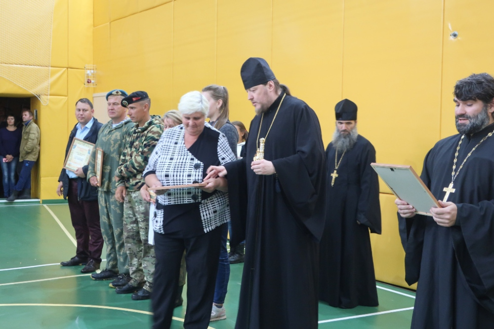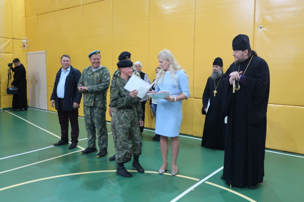 На построение 2 августа, приуроченное к завершению проекта, поздравить организаторов и ребят приехали гости: Епископ Златоустовской и Саткинский Викентий, настоятель Иоанно-Предтеченского храма, благочинный о. Александр, от руководства муниципалитета и как представитель Общественной приёмной Губернатора в районе я. Владыка по-отечески обратился к ребятам и взрослым, отметил успехи военно-патриотического лагеря, акцентировав своё внимание на таких ценностях, как взаимовыручка и настоящая дружба. Он поблагодарил всех за слаженную работу и вручил Благодарственные письма.