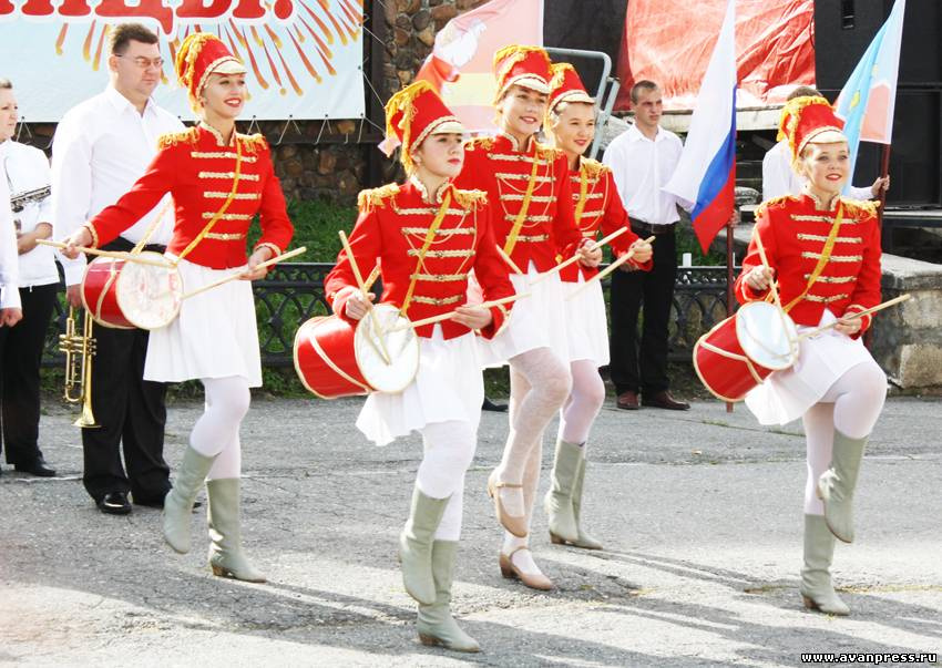 Зрители были просто в восторге от выступления духового оркестра военной части из Трехгорного. Флаги развевались на ветру, солнце сверкало на трубах оркестра, а сами музыканты потрясали зрителей своей игрой. Музыканты не только играли, но и танцевали, и даже разыграли бой между барабанщиком и тарелочником.