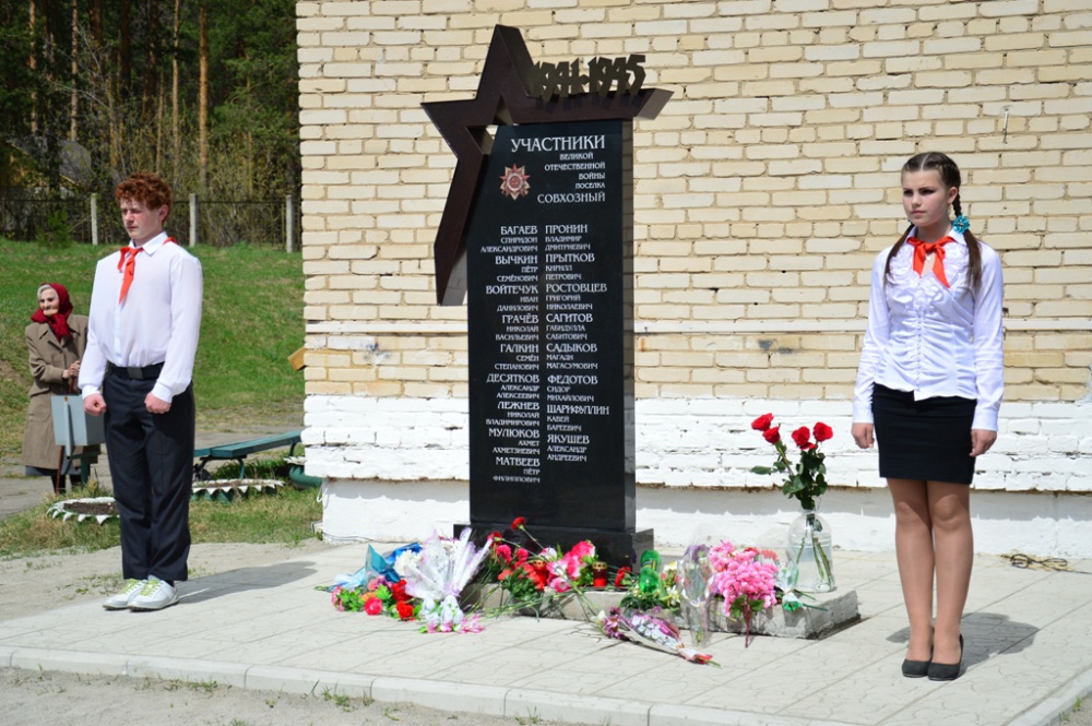 Несколько дней назад прошел великий праздник Дня Победы, в этот день жители поселка Совхозный провели митинг и концерт. Хотя в поселке не осталось живых участников войны, здесь их всегда помнят и чтут. 12 мая, немного с опозданием из-за погодных условий, открылся памятник, на котором написаны имена и фамилии семнадцати участников Великой Отечественной войны, жителей поселка Совхозный.