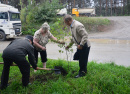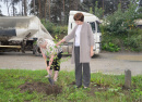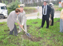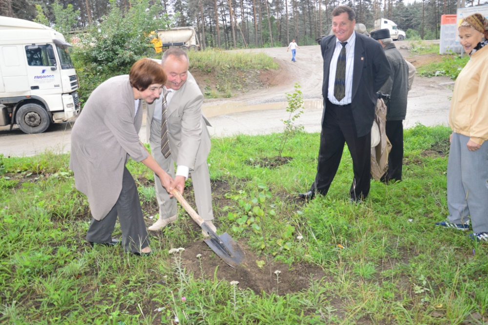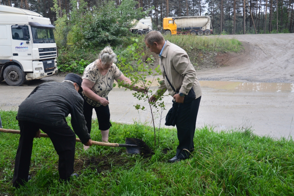 Затем, по традиции ветераны завода высадили саженцы деревьев. Марина Катунькина и Александр Чалов поддержали их и, засучив рукава, совместно посадили молодую березку. Легко справившись с задачей, Марина Борисовна призналась, что это не первое посаженное дерево в ее жизни.