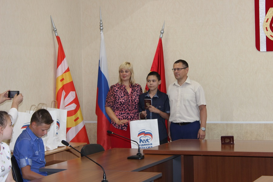 В администрации Катав-Ивановского муниципального района в торжественной обстановке в честь празднования Дня Российского Флага инспектором отдела по делам миграции ОМВД России по Катав-Ивановскому району Челябинской области майором полиции Лилией Файметьевой совместно с заместителем Главы Катав-Ивановского муниципального района Павлом Решетовым были вручены паспорта юным гражданам Российской Федерации, документ, удостоверяющий личность.