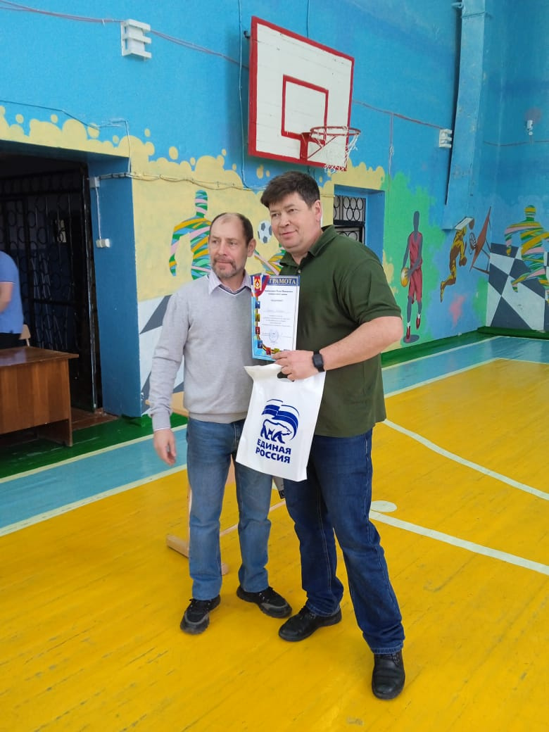Юрий Воробьев, Начальник Управления физической культуры и спорта Администрации района, член политсовета вручил всем участникам в данной категории памятные подарки от Катав-Ивановского местного отделения Партии «Единая Россия».