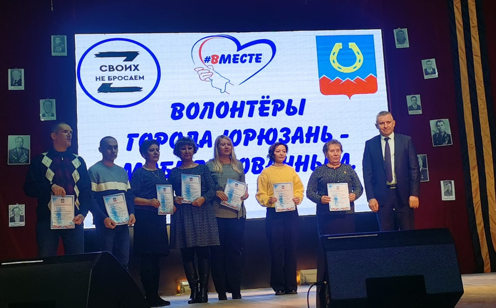 После праздничного концерта, состоялось торжественное вручение благодарственных писем Главы района, города, Совета депутатов и местного отделения Партии. Были отмечены заслуги жителей Юрюзани за сбор и формирование гуманитарной помощи для мобилизованных военнослужащих района.
