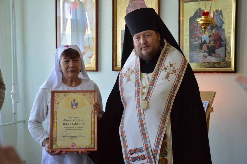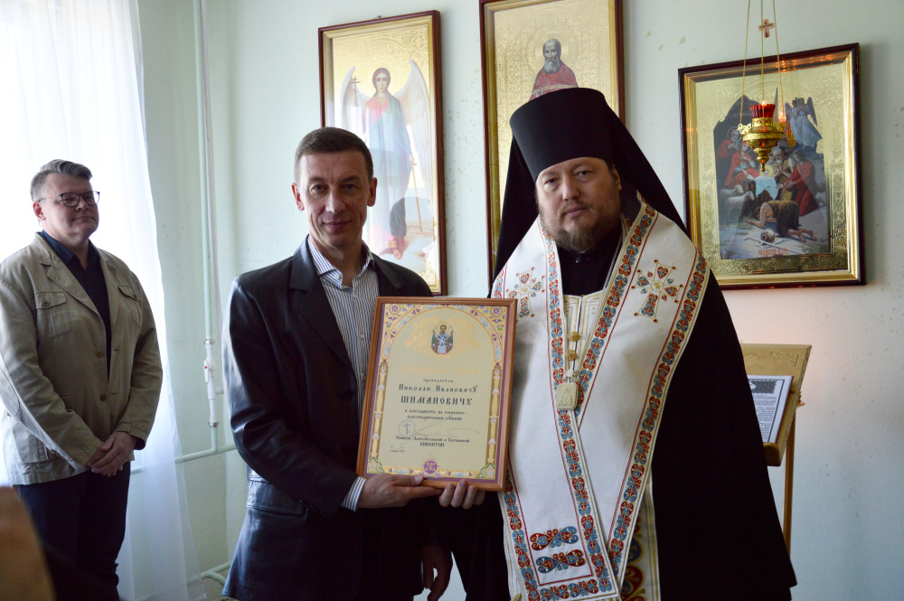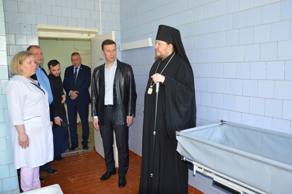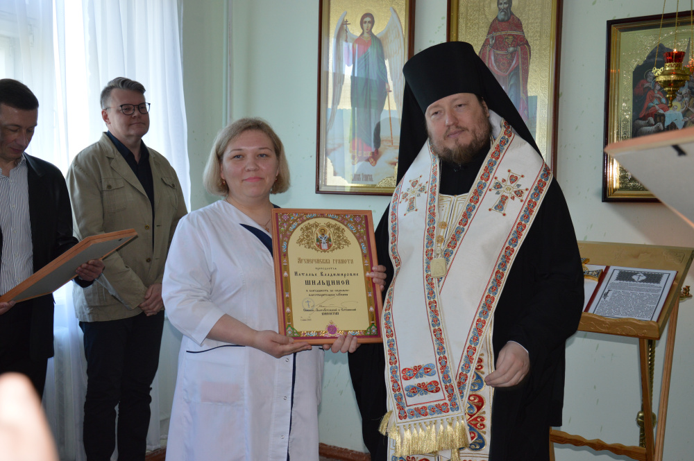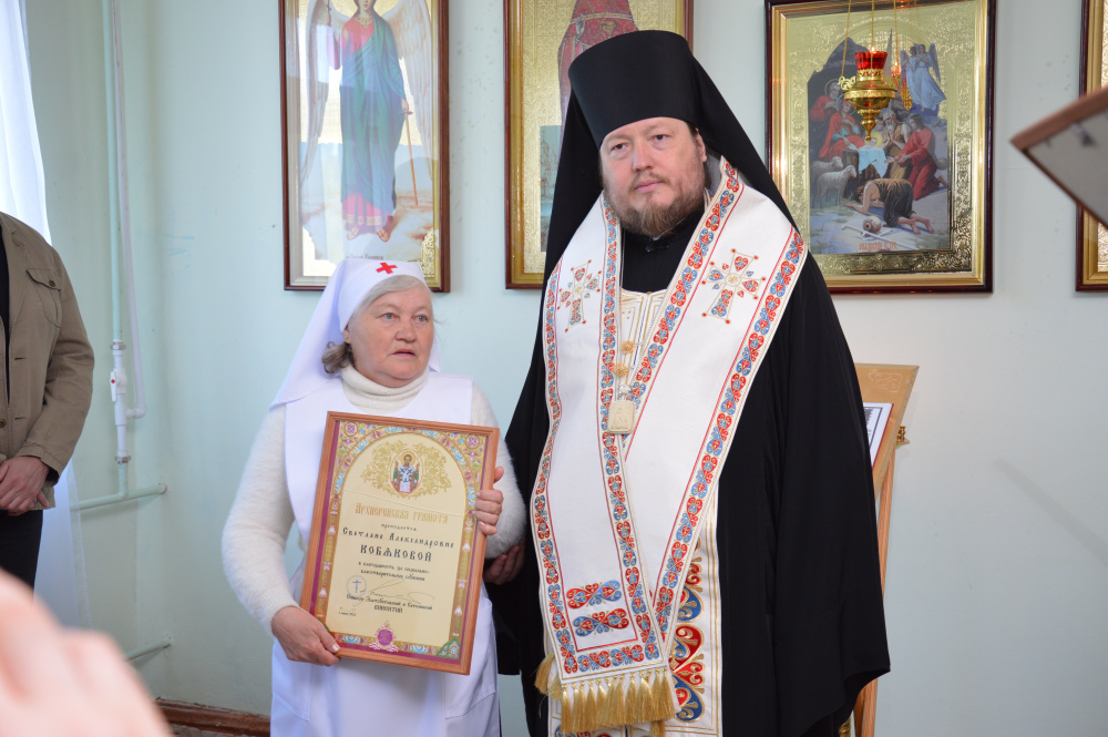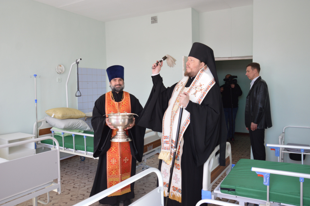 Епископ Златоустовский и Саткинский Викентий освятил лечебное учреждение молитвой, окропил святой водой палаты, благословил и пожелал здоровья пациентам, которые уже получают помощь. Также поблагодарил всех, кто внесли большой вклад в проект и преподнес архиерейские грамоты главе Катав-Ивановского района Николаю Шимановичу, первому заместителю главы муниципалитета Галине Миграновой, исполняющей обязанности главврача ГБУЗ «Районная больница г. Катав-Ивановск» Елене Шильцыной, предпринимателям и сестрам милосердия.