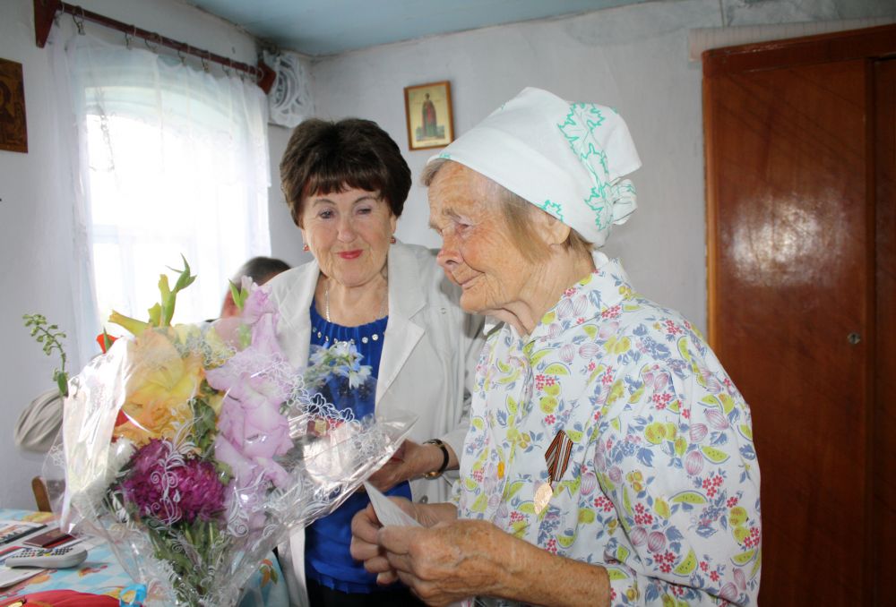 на фото: Нина Гасова (справа) получает медаль и цветы