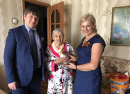 Нина Ивановна Гасова с сыном Сергеем Дмитриевичем встречали нас на улице, любезно проводили в чистенький, уютный домик. У Нины Ивановны, как всегда, на столе – сладкое угощенье! «Она с утра вас ждёт! - говорит Гасов-сын. - Всё смотрит в окошко и спрашивает: «До приезда гостей ещё долго?» Дома у Гасовой – всё белоснежное: накидки на подушках, шторы, скатерть, стены. На подоконниках и тумбочках – цветы, вручную изготовленные открытки с Днём Победы, она собирает их все года, поэтому на комоде – целая коллекция. Хозяйка отлично выглядит, с причёской. Очень гостеприимная. «Давайте выпьем шампанского!» - предложила она. «На Губернаторском приёме вместе со всеми», - предложили мы. «Ну, тогда я вам «на дорожку» пакетики соберу», - не отступала Нина Ивановна. Это получилось у неё быстро и по-матерински тепло. «Так всю жизнь в торговле работала, профессиональную сноровку у неё не отнять! - шутит сын Сергей Дмитриевич. – Маме 93 года, а она у нас – молодец. Обслуживает себя сама. Зимы переносит нормально. Мы живём рядом, помогаем». Проводить нас Нина Ивановна вышла на крыльцо и обещала при хорошей погоде приехать на приём Губернатора во Дворец культуры района.