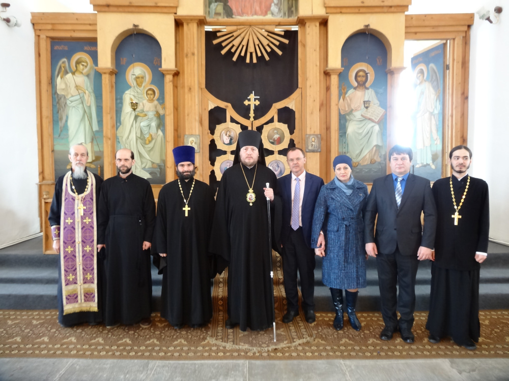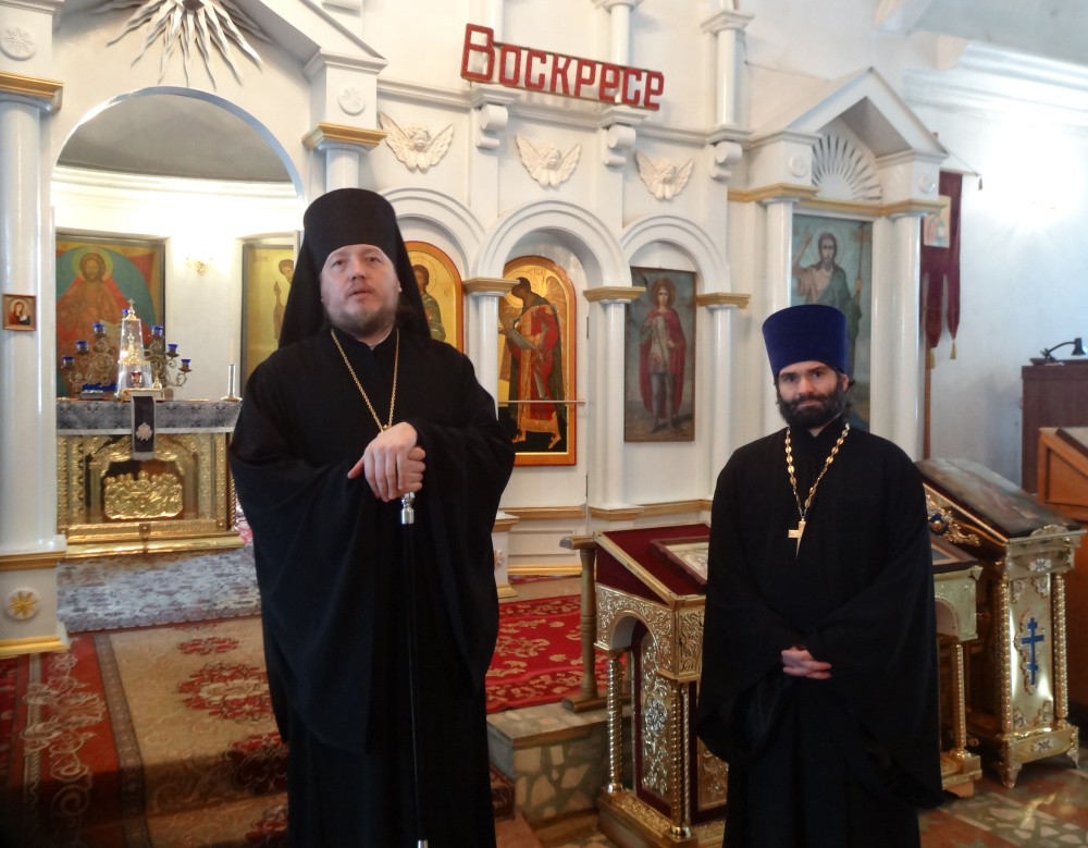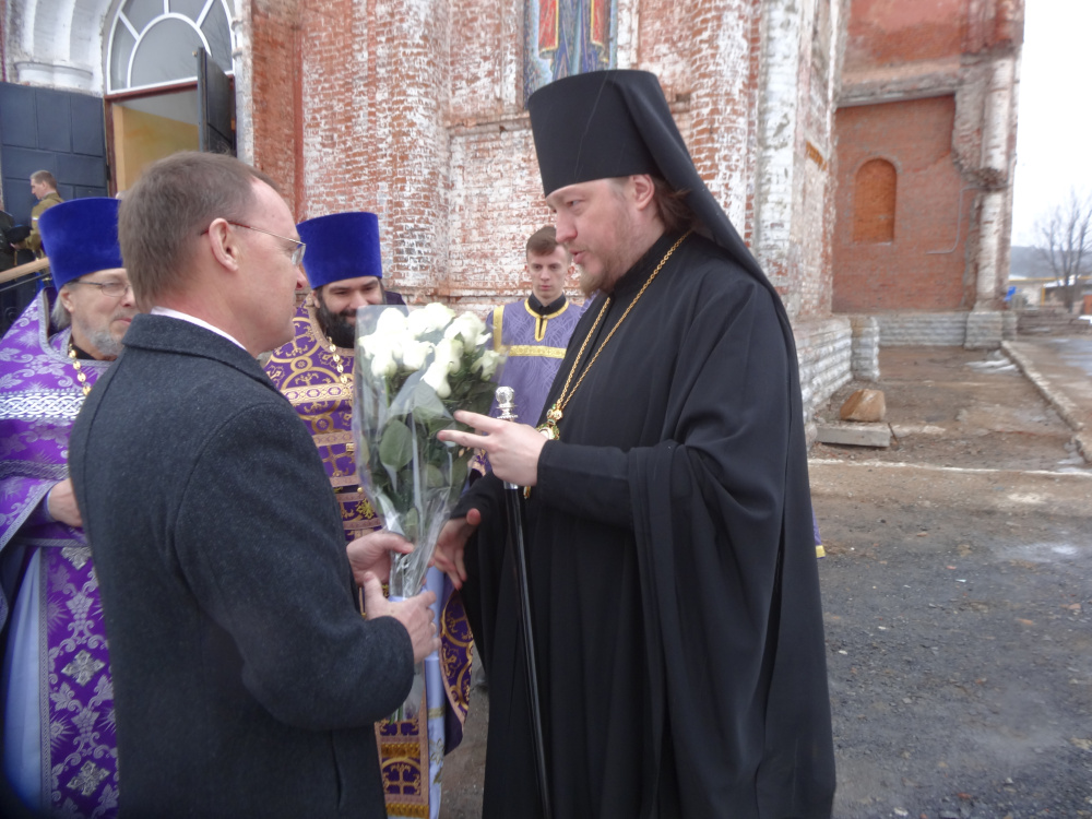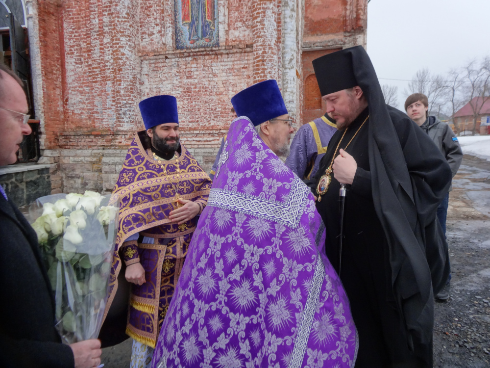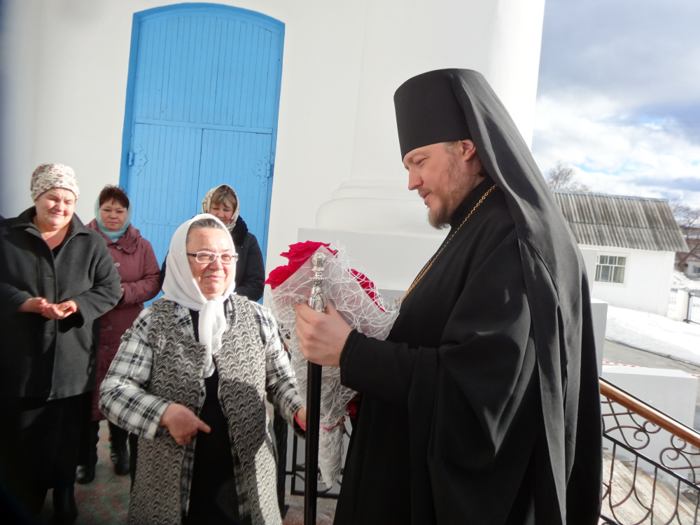 Воскресная служба в Юрюзанском Христово-Рождественском храме в день памяти преподобного Иоанна Лествичника началась в 9.00. Хотя по календарю весна, зима никак не хочет уступать свои права тёплому сезону, по утрам морозно, ветряно, сыплет снег. Дороги в связи с непогодой всегда сложные, прихожане волновались, как по перегруженной М5 доберётся епископ. Ко всеобщей радости он прибыл вовремя, в сопровождении молодых, мобильных руководителей отделов епархии. Гостей встречали благочинный Катав-Ивановского округа протоиерей Александр Симора, настоятель храма протоиерей Пётр Назаров, первый заместитель главы Катав-Ивановского муниципального района Алексей Захаров, председатель Собрания депутатов Катав-Ивановского муниципального района Николай Рудаков, исполняющий обязанности главы Катав-Ивановска Иван Норко, глава Юрюзани Сергей Замятин, глава Трёхгорного Евгений Сычёв, глава Тюлюкского сельского поселения Игорь Мозговой. Они преподнесли епископу букет из белых роз.