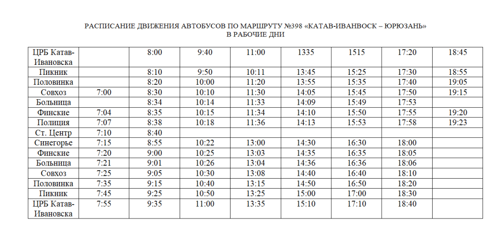 Внимание! Перевозку пассажиров по маршруту №398 «Катав-Ивановск — Юрюзань» будет осуществлять другой перевозчик