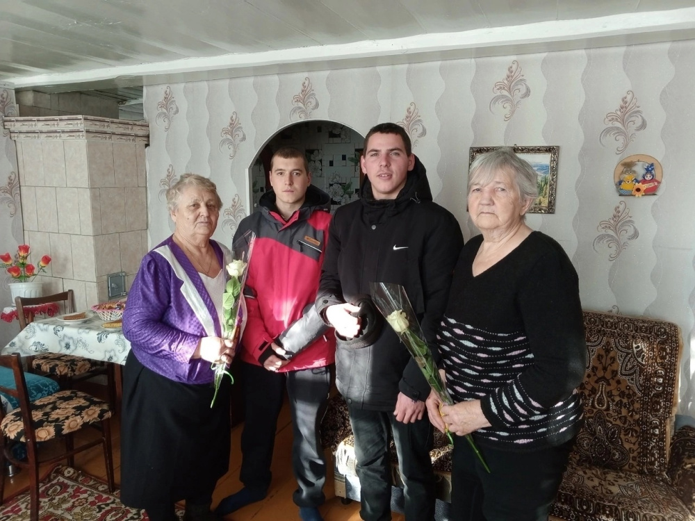 Женщины с радостью принимали поздравления. Ведь для пожилых людей очень важно знать, что о них помнят, их ценят и уважают. Гостеприимные и заботливые женщины в ответ напоили волонтёров чаем с пирогами.