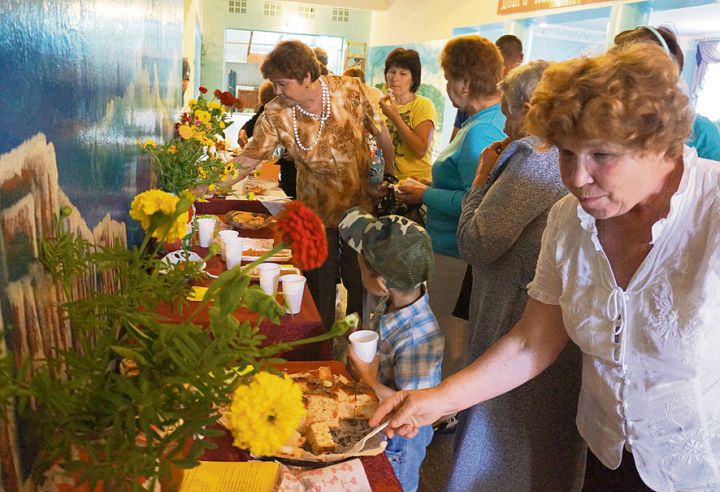 Невозможно было пройти мимо красиво оформленных столов, расставленных в фойе клуба. Запах выпечки витал там всюду. Все желающие смогли в этот вечер не только попробовать блюда из яблок, но и взять рецепт понравившегося пирога, джема, варенья.