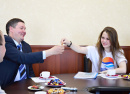 Встреча прошла в теплой, доверительной атмосфере, за чашкой чая. На ней также присутствовали Елена Хохлова, главный редактор газеты «Vis-a-vis», и Александр Донцов, главный редактор «Авангарда».