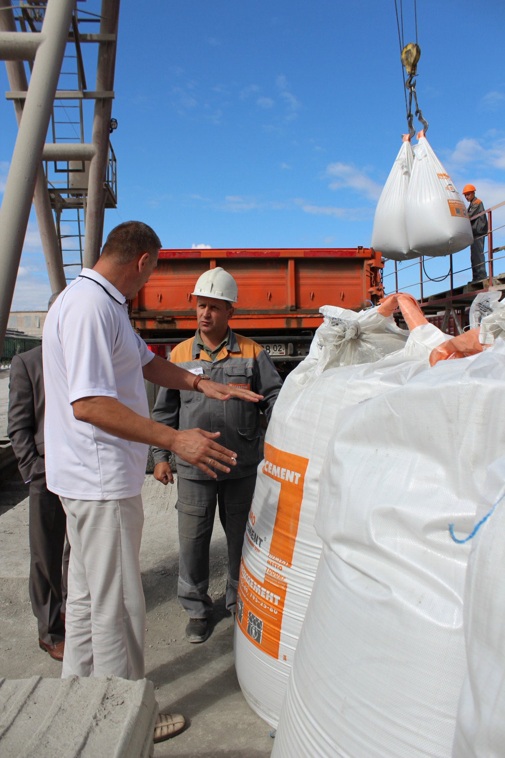Большой интерес у партнеров вызвало посещение цеха железнодорожного транспорта. Храмов Игорь Николаевич, начальник цеха, подробно рассказал потребителям о работе своего подразделения, показал, как упаковывается цемент в мешки по 50 и 1000 килограмм, как он грузится в автомобили и вагоны, объяснил, как происходит процедура обслуживания клиентов.
