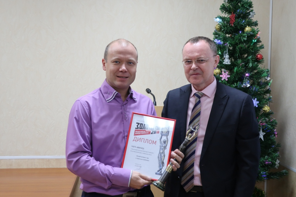 Высокой профессиональной награды журналистского сообщества Российской Федерации – «Золотого Гонга-2018» - удостоена редакция районной газеты «Авангард» Катав-Ивановского района Челябинской области в номинации «Лучший материал года о социальных проблемах». 3 декабря на торжественной церемонии, состоявшейся на площадке главного издания страны - «Российской газете», - руководителю нашего СМИ Александру Донцову была вручена искусно изготовленная статуэтка богини Ириды. Это очень высокая оценка творческого, интеллектуального труда коллектива! Поздравляем!