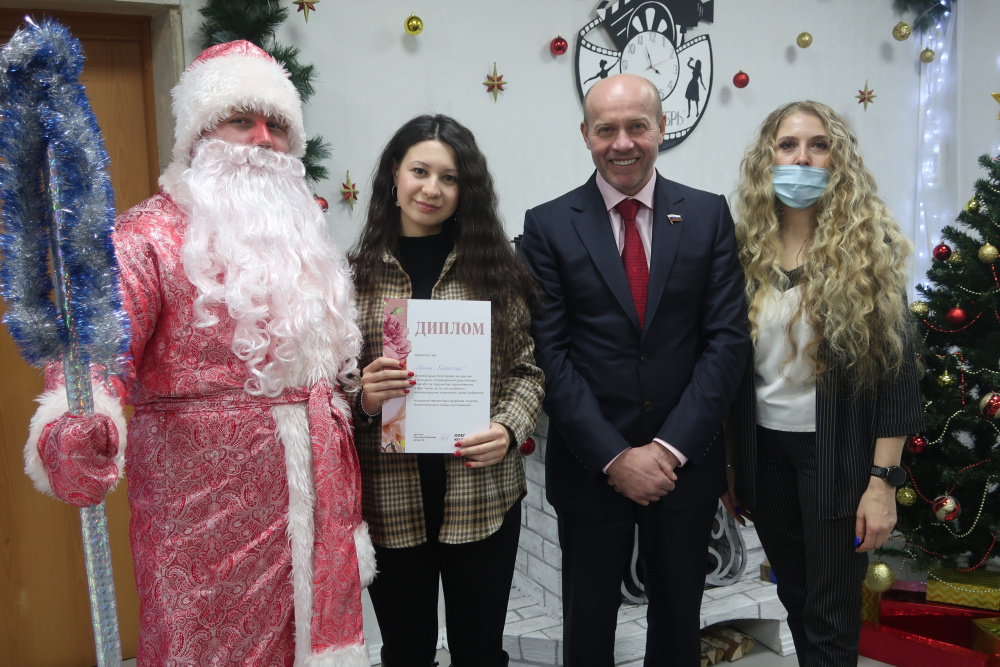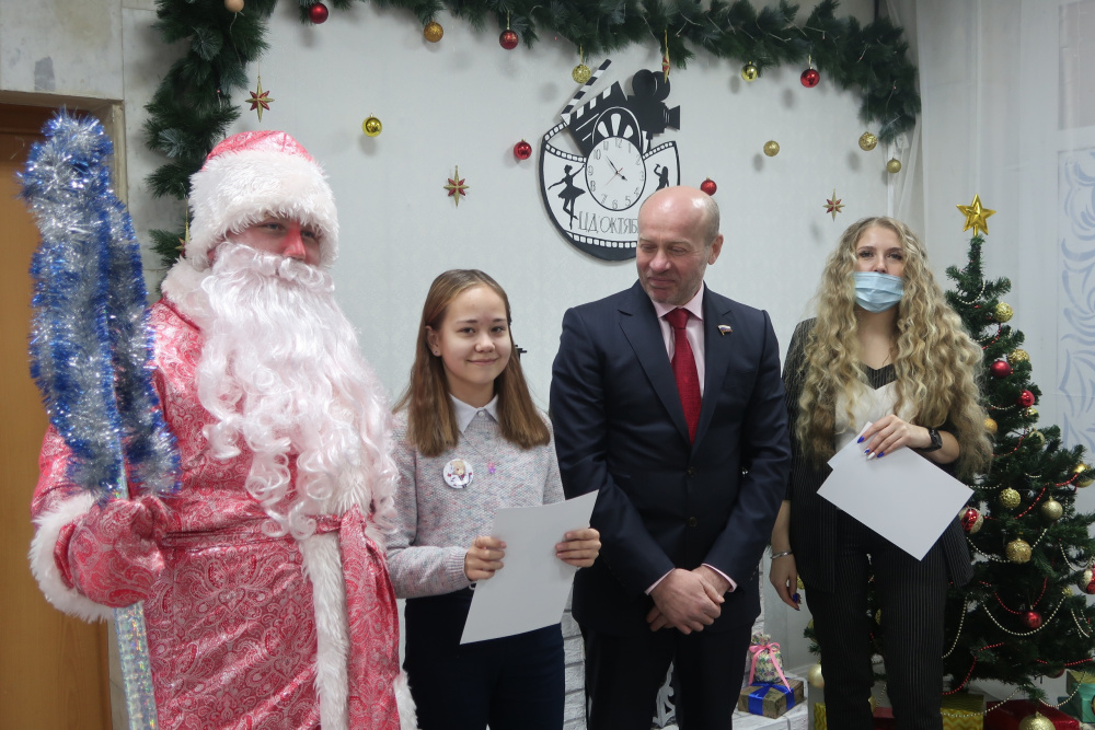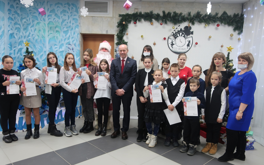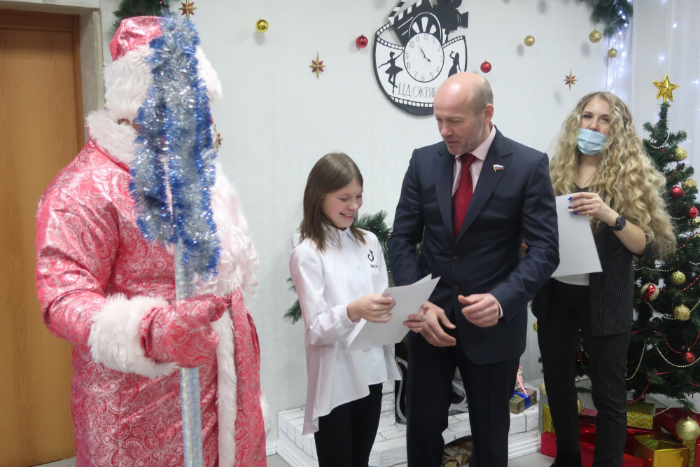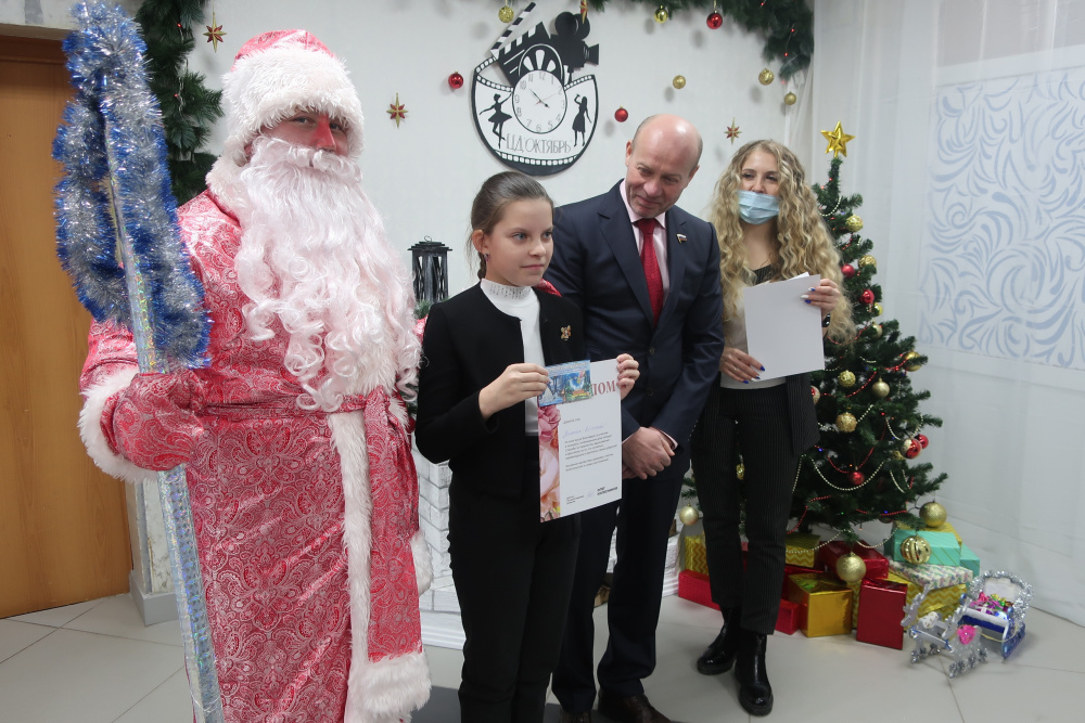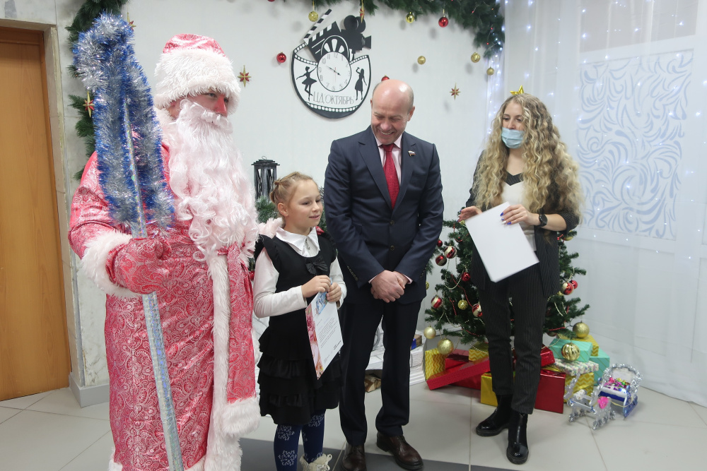 В фойе Центра досуга «Октябрь» тем временем собрались катав-ивановские участники конкурса, посвящённого Дню матери. Всего было зарегистрировано 137 участников. Ребята пришли со своими родителями и педагогами. Коллектив учреждения тепло их встречал в уютной новогодней гостиной с камином. Аплодисментами они приветствовали своего старшего друга – депутата Госдумы Олега Колесникова. Олег Алексеевич пришёл не один, а с Дедом Морозом (в роли сказочного волшебника выступил лидер волонтёрского движения «Клевер» Константин Клёпов. – прим.авт.), чтобы создать всем праздничное настроение.