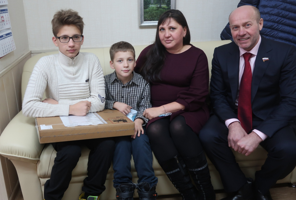 Олег Алексеевич подарил многодетной семье ноутбук, пожелал ребятам успешной учёбы и новых побед. Сказал, что гордится знакомством с трудолюбивыми, новыми друзьями.
