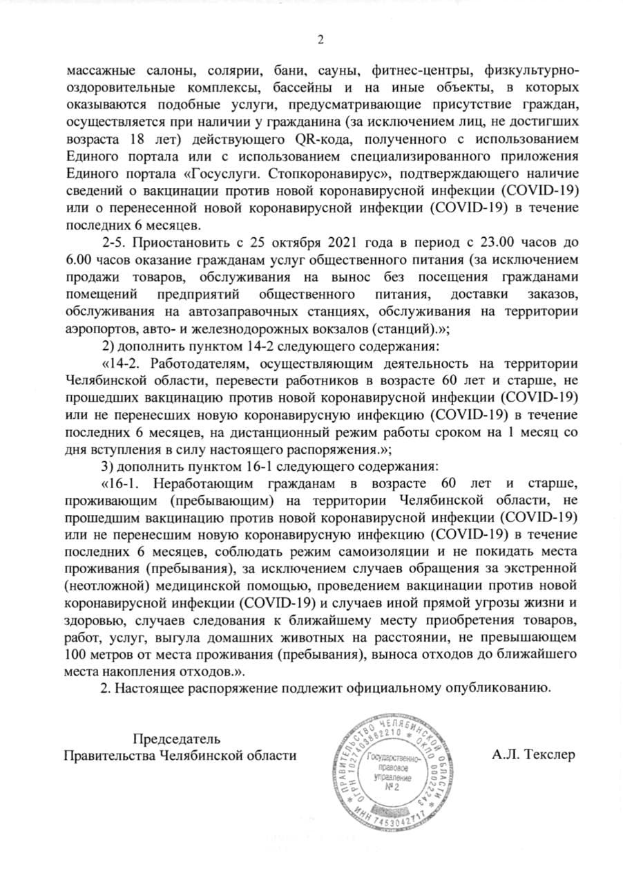 Распоряжение подписал губернатор Челябинской области Алексей Текслер, оно вступает в силу со дня его опубликования.
