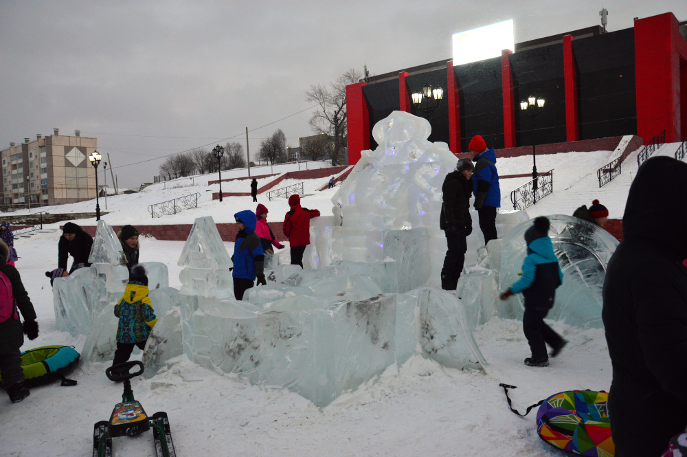 Ни ветер, ни лёгкий морозец не испугали детей, а также их родителей. На Центральной площади в Катав-Ивановске горки не смогли удержать малышей, потому что к ним вышли сказочные персонажи, а также Дед Мороз со Снегурочкой.