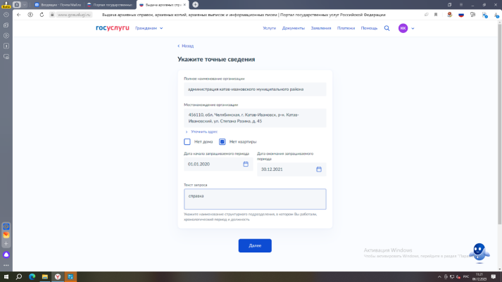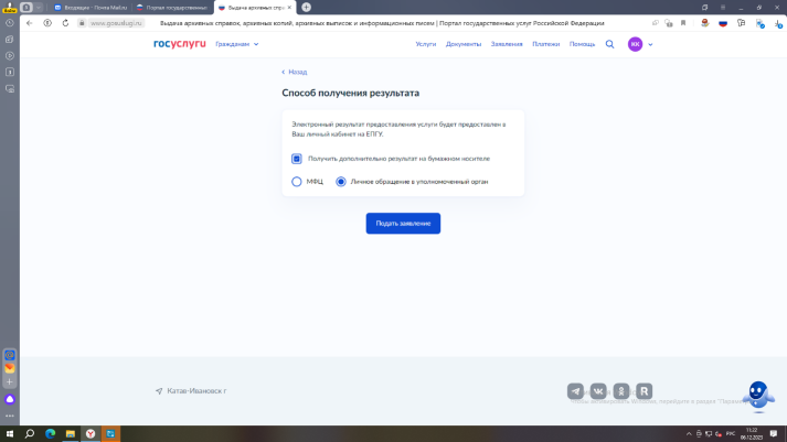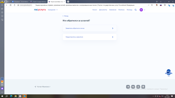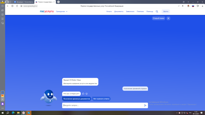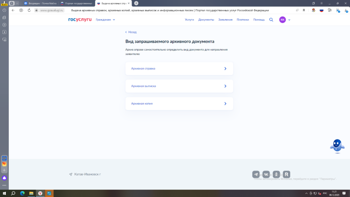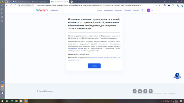 Алгоритм получения архивной справки через портал Госуслуги