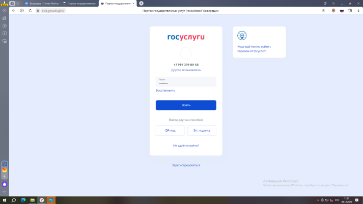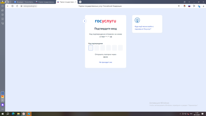 3. Заходим в личный кабинет с указанием логина и пароля, ждем подтверждения в виде СМС на номер телефона