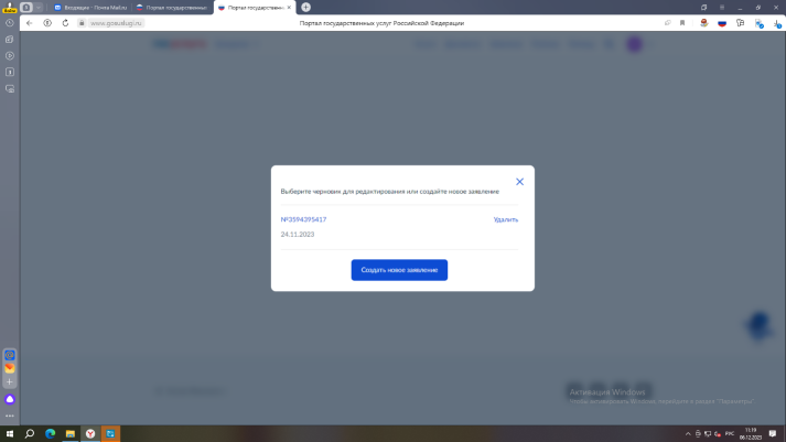 4. Создаем заявление